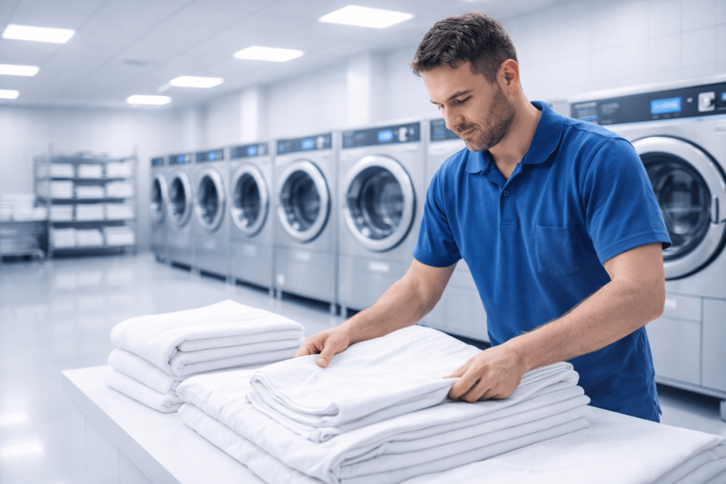 Advanced Hospital & Institutional Laundry Solutions. Medical-grade hygiene for hospitals, factories, and Institutions in Visakhapatnam.