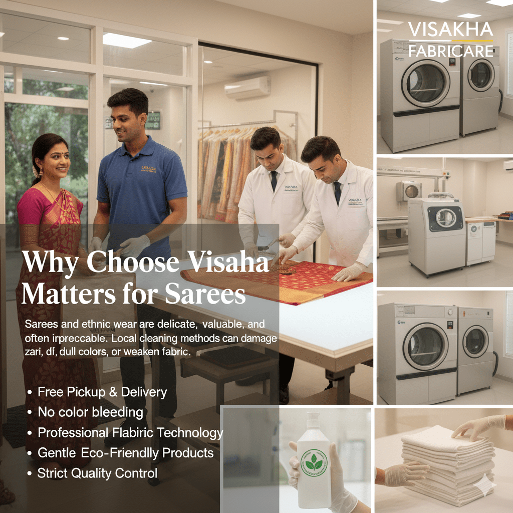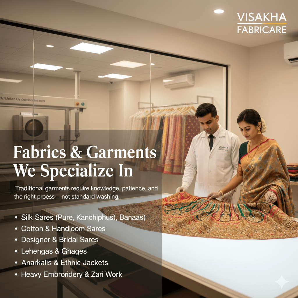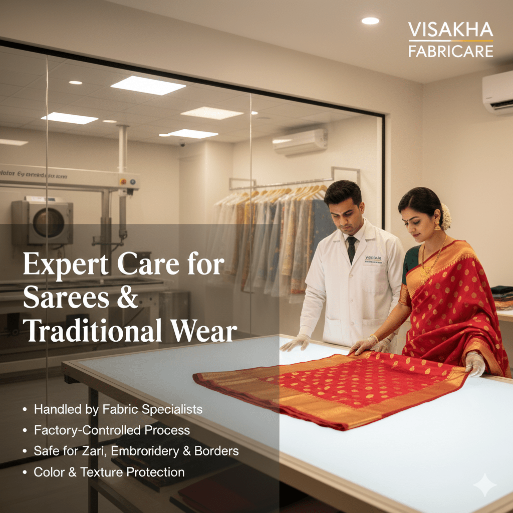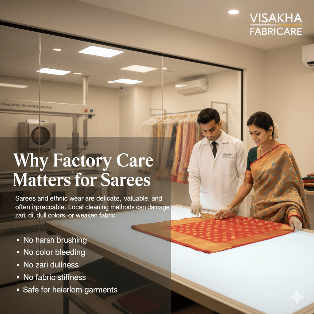 Sarees and ethnic wear are delicate, valuable, and often irreplaceable. Local cleaning methods can damage zari, dull colors, or weaken fabric.