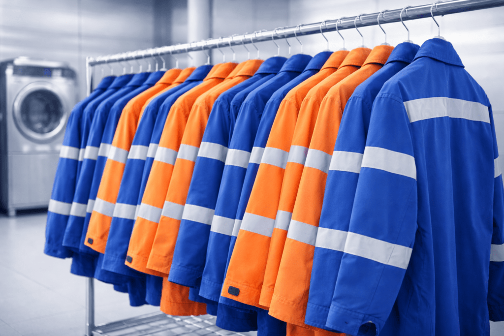 Robust laundry Solutions for industrial environments, handling heavy-duty fabrics, Safety Clothing, and specialized work uniforms.